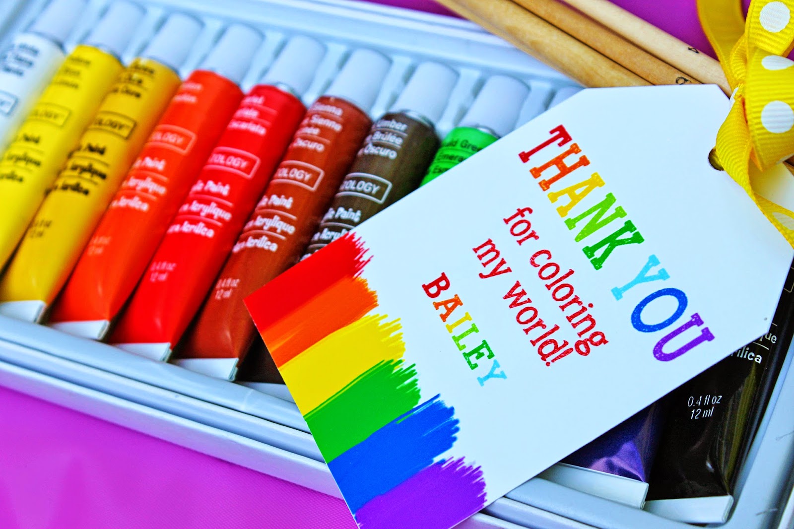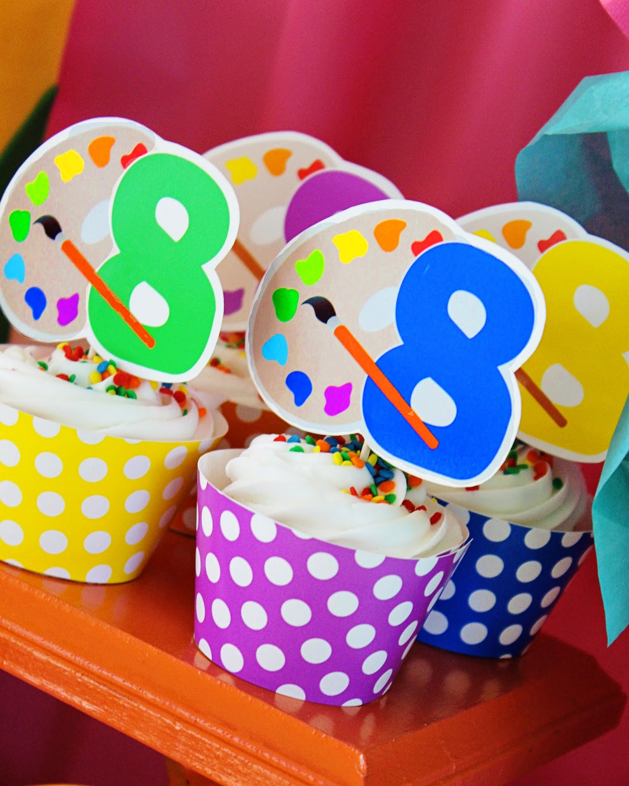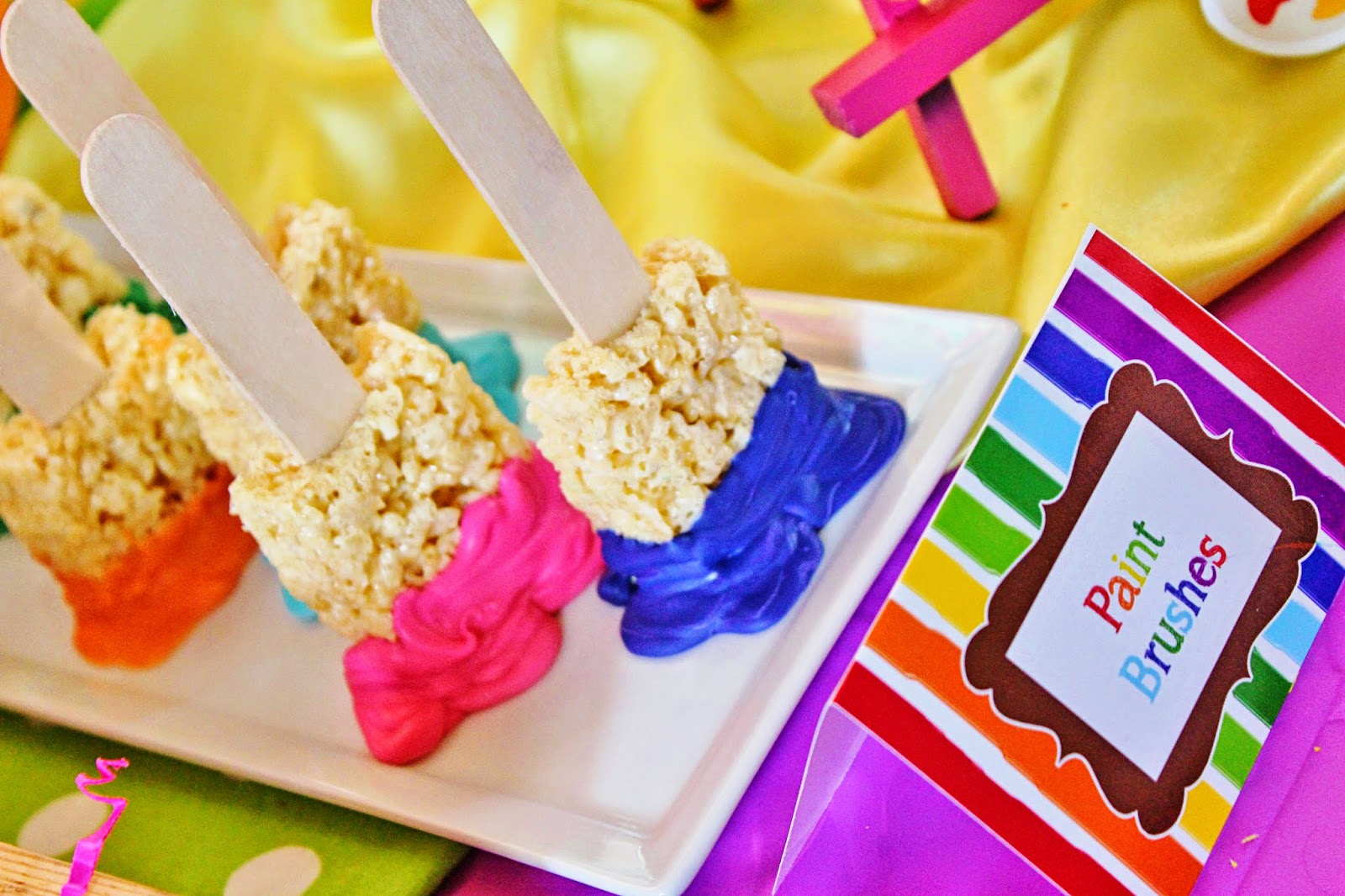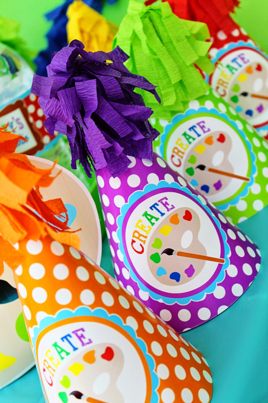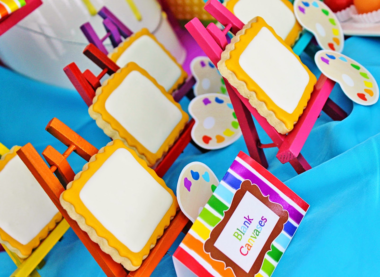 I love the way this party turned out. I'm a sucker for color and this one has LOTS of it!!! If you're planning an art party, this printable collection is a MUST! RIGHT HERE is where you can get your own personalized set. So fab! ;)